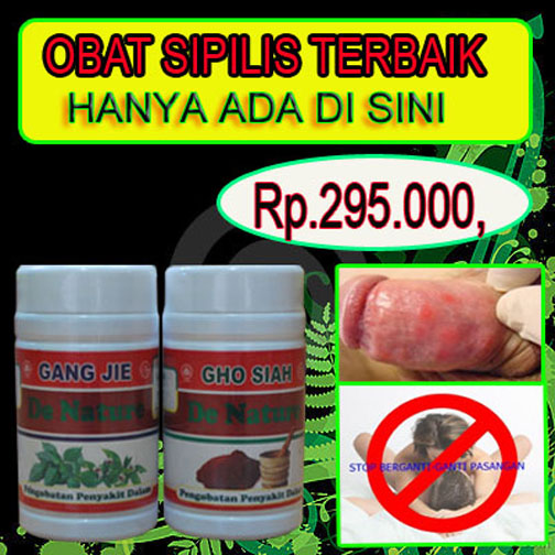 Obat sipilis apotik cepat sembuh tanpa kambuh lagi. Cara Menyembuhkan Penyakit Sipilis dengan Obat sipilis ampuh Gang Jie dan Gho Siah yang merupakan 2 produk herbal dari De Nature Indonesia yang telah terbukti khasiat dan manfaatnya untuk menyembuhkan penyakit sifilis atau raja singa dengan cepat dan aman tanpa efek samping. Proses penyembuhan menggunakan obat herbal ini adalah 3 sampai dengan 5 hari serta dari hari ke 5 sampai dengan ke 10 merupakan masa penuntasan atau penyembuhannya.
